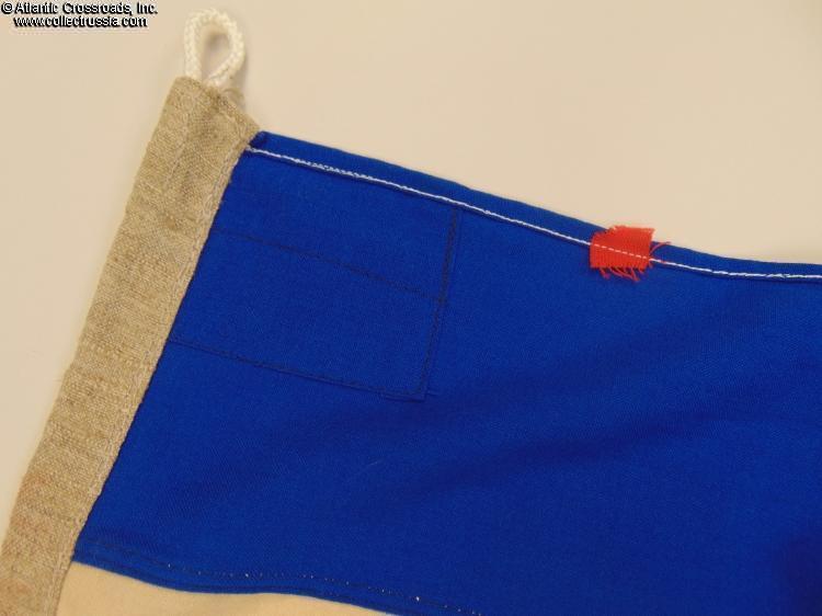 The flag is in outstanding, excellent condition, apparently never used and shows only storage age. It is perfectly sound, almost immaculately clean, free of tears and completely free of the moth damage prevalent among Soviet naval flags made of wool. The colors are strong. Upon very close inspection, one can find a couple of tiny spots and a few minuscule snags in the fabric, but they are practically invisible at a normal viewing distance.