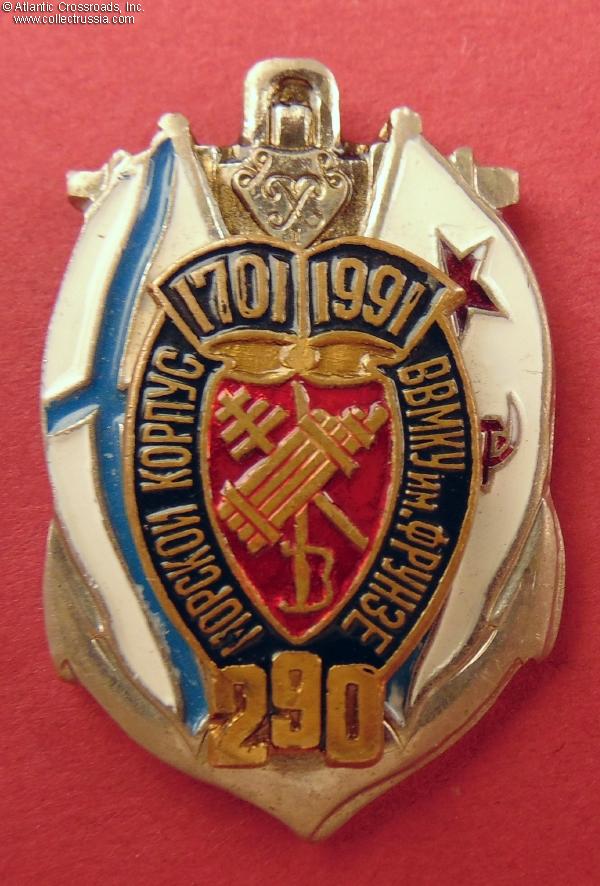 Badge in Commemoration of the 290th Anniversary of the Frunze Naval Command School (VVMKU), 1991.