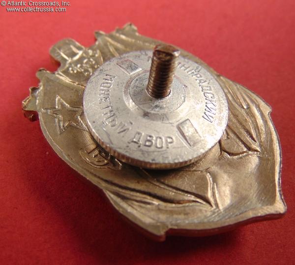 A very prestigious naval academy, the Frunze Naval School had its roots in the naval School for Mathematical and Navigational Sciences founded in 1701 by Peter the Great. Initially located in Moscow, it soon moved to the newly-built capital of St. Petersburg and remains there to this day. Throughout the imperial and Soviet eras, it underwent many transformations but always remained an elite establishment for naval officer cadres. It is still in operation, currently under the name of St. Petersburg Naval Institute. The badge was probably issued exclusively to the school's faculty, staff and VIP graduates. An uncommon piece from the final year of the Soviet Union.
