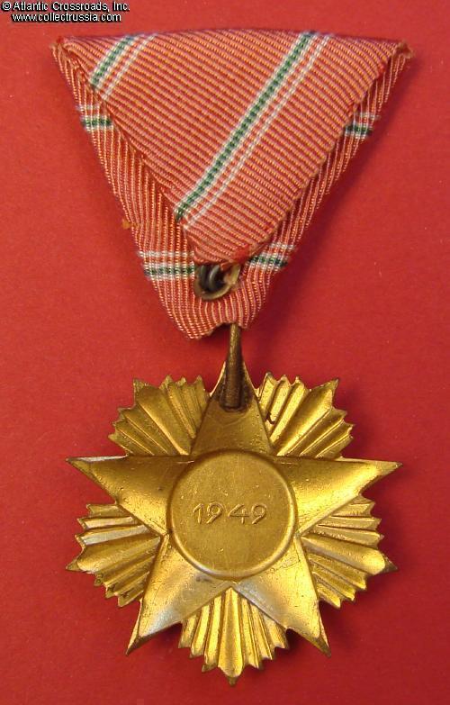 Founded 24 October 1949, the first presentation of the various degrees of the Hungarian Order of Merit appears to have been on May Day of 1950 - with a substantial share of awards going to Soviets. The various degrees of this Order were presented for less than three years. Each of the three higher classes of the award consisted of the breast star (76 mm wide for the 1st cl. and 54 mm for the 2nd and 3rd) and the medal with an additional "small decoration" badge attached to its ribbon. The 4th class came in the form of a single smaller breast star without the starburst. Lastly, the medal with a starburst (but without the "small decoration") constituted the lowest, 5th class of the order. Of the third class sets - such as the one offered here - there were only 285 ever issued.