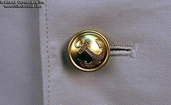 As offered, the buyer has the option of having the boards sewn on to the coat by his local tailor or we can, for an extra charge of $55.00 (and about a three day delay in delivery), have the boards sewn on for you. (The shirt, tie, dagger and dagger belt are not included with the coat, trousers, shoulder boards and rank insignia). The purchaser can fasten down the two stars that we are including to make a pair of Captain Third Rank boards (as shown in our photographs), or, if he has extra gold stars that he has already collected, make this uniform suitable for a Captain First or Second Rank!