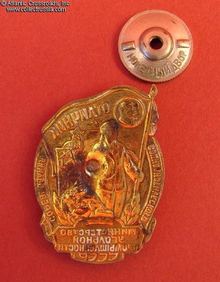 Badge for Excellence in Socialist Competition, Ministry of Coal Mining Industry, Type 2, early 1950s.