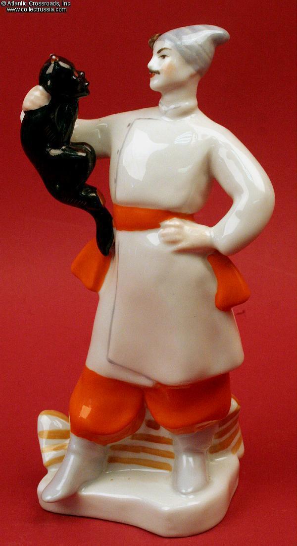 Vakula and a Demon, Kiev Experimental Ceramic Factory, 1962-1976, porcelain figurine shows a dramatic scene from Tchaikovsky's comic opera "Vakula the Smith".