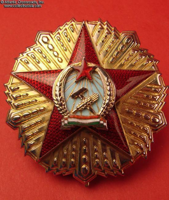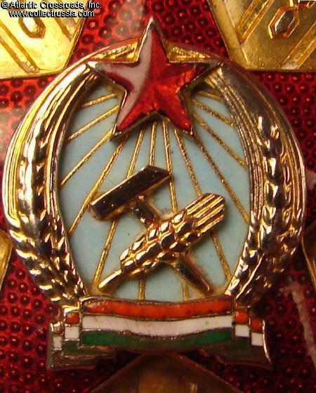 In outstanding condition. The enamels are flawless. The details are completely free of wear, and the original gilt finish is nicely preserved and bright. This magnificent piece is of finer quality than nearly all other contemporary Hungarian awards. Only 174 of the Orders of Merit of the Hungarian People's Republic had been issued in total by the time the award was abolished in 1953. It is currently u