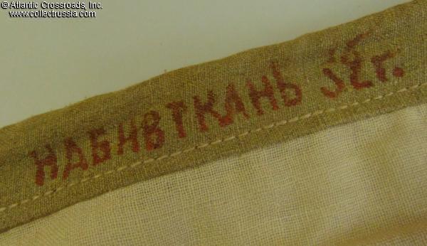 In wool bunting, same quality and construction as the typical Soviet Navy ensign and other naval flags of the period. Measures approx. 29" x 22". Comes with a long attachment rope in natural hemp (as opposed to synthetic thread as seen on later Soviet flags), complete with metal hardware to hoist on the line. The hoist sleeve shows markings of the Nabivtkan Factory, quality control stamp, and a 1952 date of manufacture.