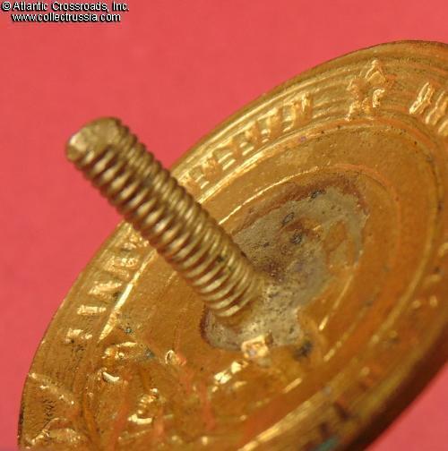 Brass, enamels; measures 37.0 mm in height, 36.0 mm in width. In excellent condition, very uncommon for this badge. The enamel is perfect, completely free of even tiny contact marks or flakes, and shows beautiful luster. The original fire gilt finish is nicely preserved and bright on both sides, and the details of the soldier are pristine and exceptionally crisp. The screw post is of full length, over 15 mm - has not been shortened as is often the case. Unlike most other surviving examples, this specimen retains its original screw plate marked "Moscow Artists Cooperative" (duri