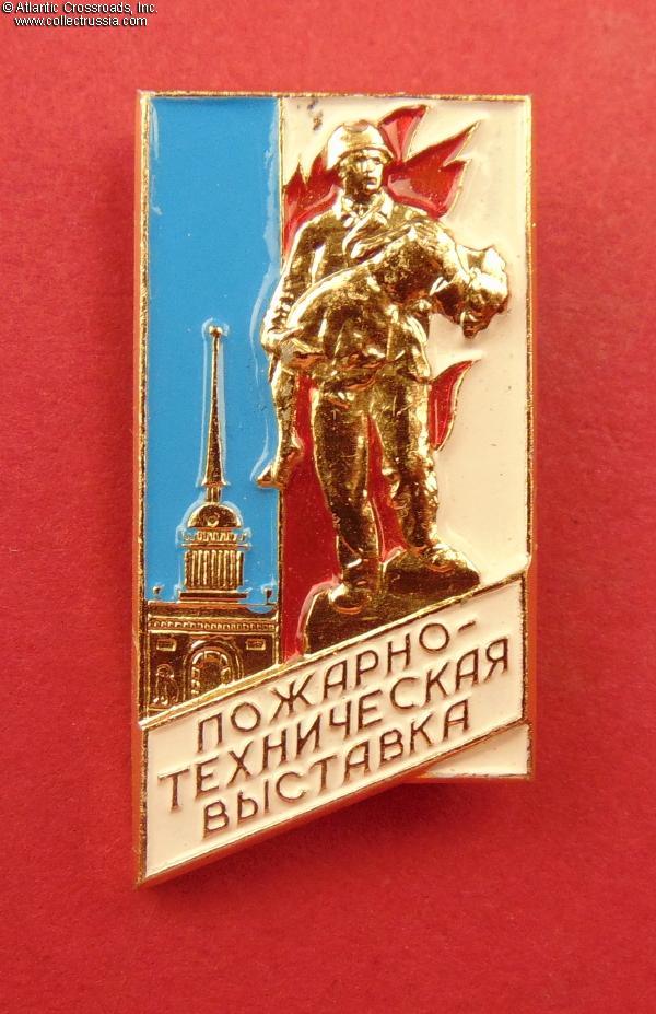 Firefighting Equipment Exhibition in Leningrad, Participant's Badge, circa 1970s-80s.