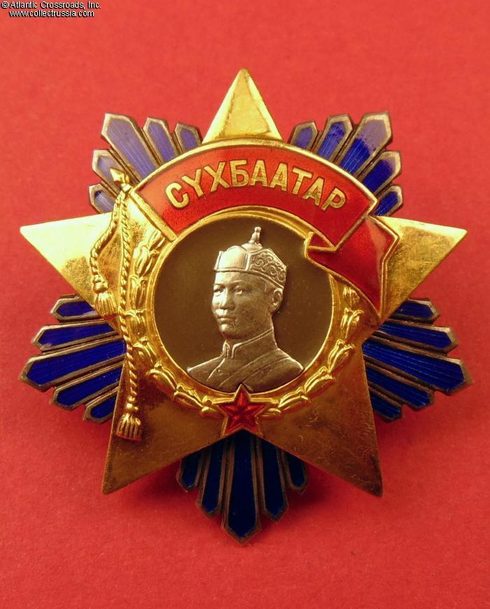 The Order of Sukhbaatar was the highest decoration of Mongolian People's Republic, equivalent to the Soviet Order of Lenin. Unlike the Lenin however, the Order of Sukhbaatar was issued very sparingly. Only 2000 of them were produced, 1300 of which were Type 2 pin backs.