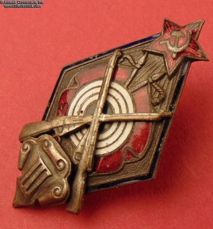 The badge was awarded exclusively to the OGPU servicemen for getting high marks at a shooting range. Although in theory it could be issued to a Border Guard of State Security trooper of any rank, the majority of the recipients were probably officers. That would explain the rarity of the badge: in the mid- to late-30s, the mid- to high-level leadership of NKVD (formerly known as OGPU) was decimated by repeated purges, so relatively few of the badges and their recipients were still around at the beginning of WW2. It is especially rare to see one of these badges without any damage or flaking to enamel, including the fragile blue border and the red star.