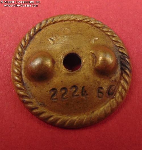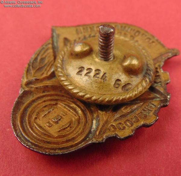 The details of the wreath are well-preserved and crisp; there is a mild wear to the raised points of the soldier and a minor amount of pitting that is typically found on the Voroshilov Marksman badges due to corrosion of the underlying steel. The screw post is full length, over 11 mm. Comes with the original screw plate in bronze-plated steel with the factory logo "MOAKh' and stamped serial number 222460; the screw plate is somewhat loose due to worn threads but still works reasonably well and will remain on the screw if left undisturbed.