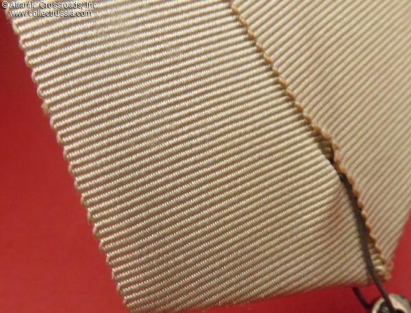 The medal comes on a well-preserved St. Andrew ribbon which is of the period albeit probably not original to the medal. The makeshift suspension in cardboard and connecting link are modern replacements.