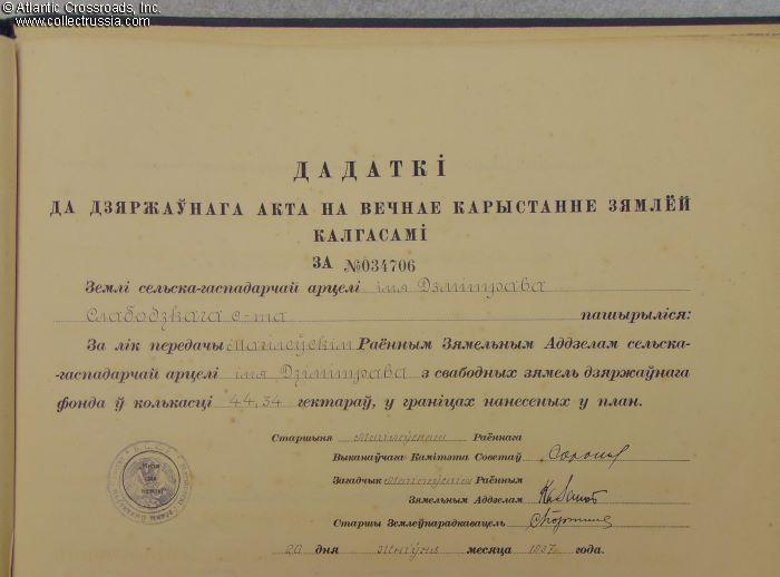 Official 1936 State Grant of Land to a Collective Farm in Belorussian SSR "For Eternal Use".