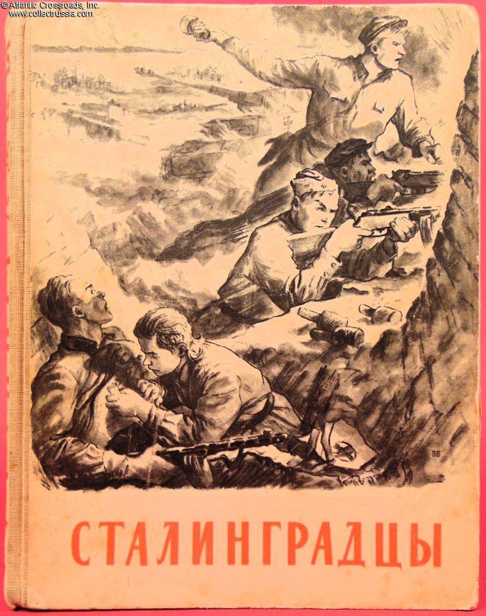 This is a very rare early post-war publication of stories about the Battle of Stalingrad, told by residents of the city, participants and survivors of the great battle. The book contains sixty-two such stories, transcribed into literary narrations by two professional writers, and illustrated by seven artists with sixty-three drawings depicting the events described in the stories, some of them full-page prints in c