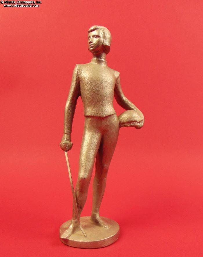 Fencer Girl, Statuette in Silumin, maker marked and dated, 1982.