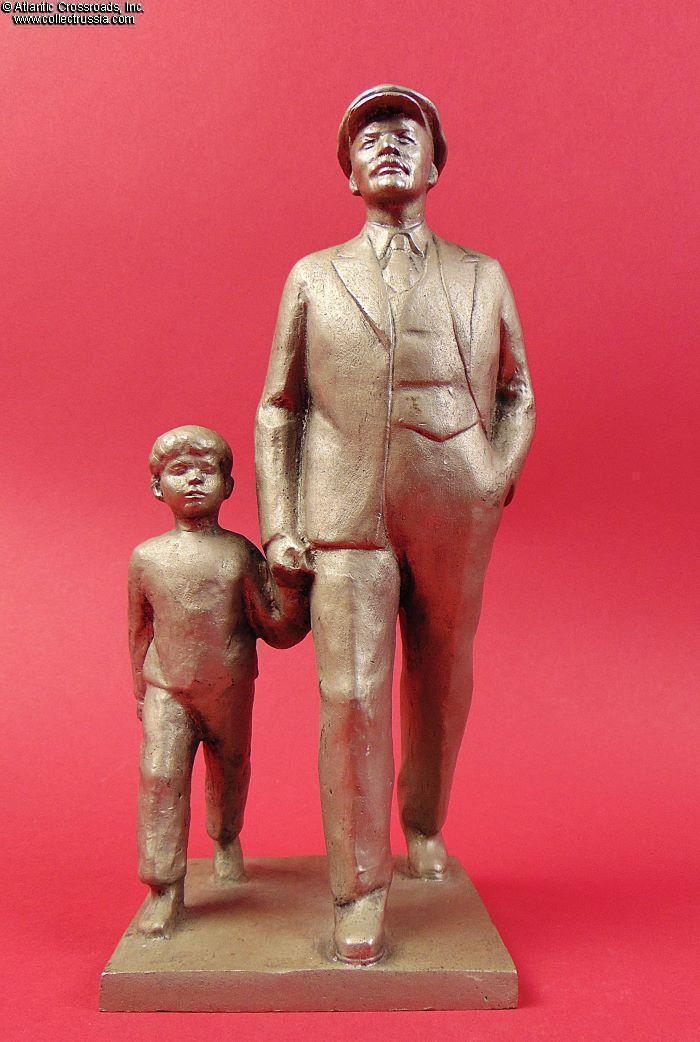 Statuette of Lenin walking with a little boy, in Silumin, original model by Albert Charkin, 1970s.