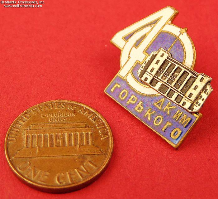 Badge in Commemoration of the 40th Anniversary of the Gorky Palace of Culture in Leningrad, 1967.