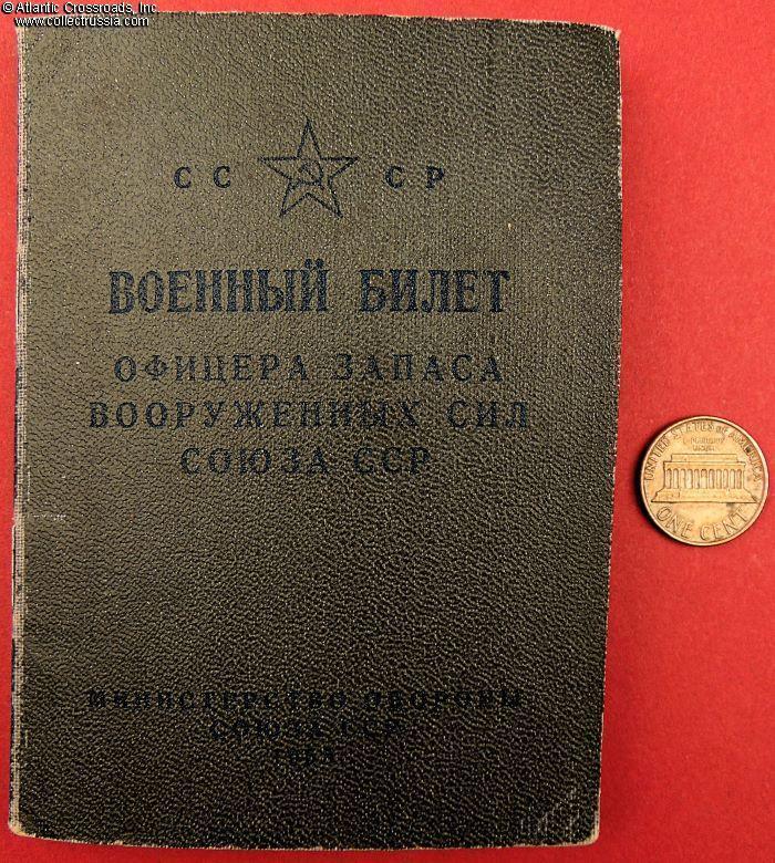 Measures 3" x 4 ¼", in leatherette-laminated hard cover. The document contains comprehensive information starting with Gretsky's branch of the military, and including personal data, education, ethnicity, communist party, social and marital status, education, spouse and children, all military positions held throughout his active duty service and, specifically, during WW2, all awards, and, finally, the statement of discharge from army reserve upon reaching the age limit.