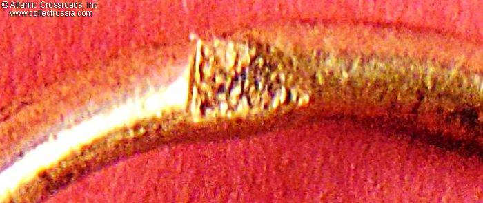 Silver gilt, enamels, 43.7 mm in height (incl. eyelet), 45.5 mm in width, weighs 25.3 g including suspension wreath with eyelet and link ring. The obverse center medallion features the crown of Iran in its natural colors on blue-enameled background encircled in a green-enameled wreath with a date in Hijri calendar which corresponds to the year 1913, the year of establishment of the order. The reverse center medallion shows a gilt radiant sun face on blue-enameled background. The link ring is hallmarked. The hallmark is not very clear but is most likely Arthus Bertrand's "AB&Cie/800."