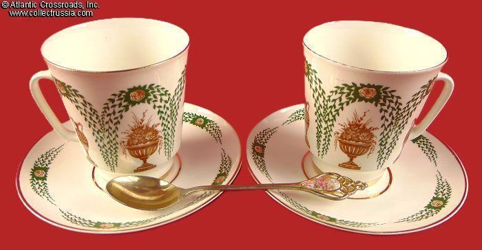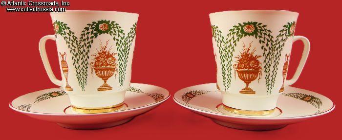 Lot of Two Bone China Cup-& Saucer Coffee Pairs (4 pieces), by LFZ (ЛФЗ), marked for export, 1972 - 1986.