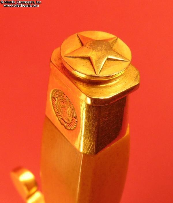 significant rust. The gold finish on all the brass parts is very bright and essentially perfect. Overall, it is a superb Stalin-era example: very