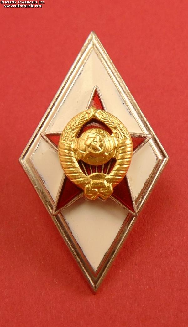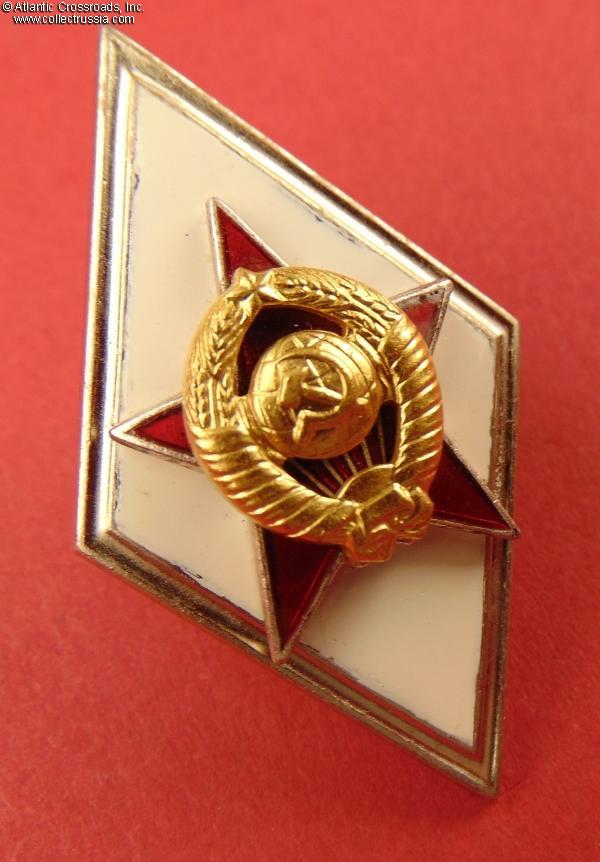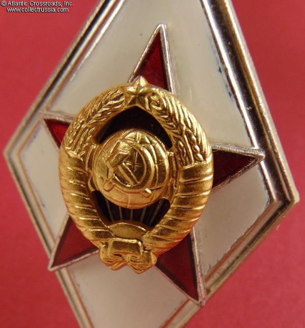 This badge came to replace the late 1950s version of the "unified" military academy badge in solid silver. This is the official, mint-made version awarded to all students upon graduation (as opposed to additional graduation badges that were often privately commissioned and purchased by the graduates with their own money.)