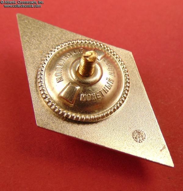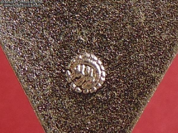 Brass gilt, silver plating, enamels; 46.4 x 26.9 mm. Riveted three-piece construction, fine quality. There is a raised late-style logo of the Moscow Mint on the reverse.