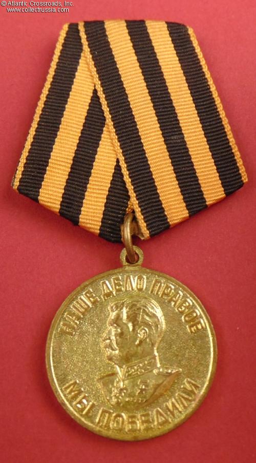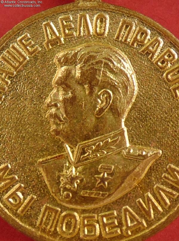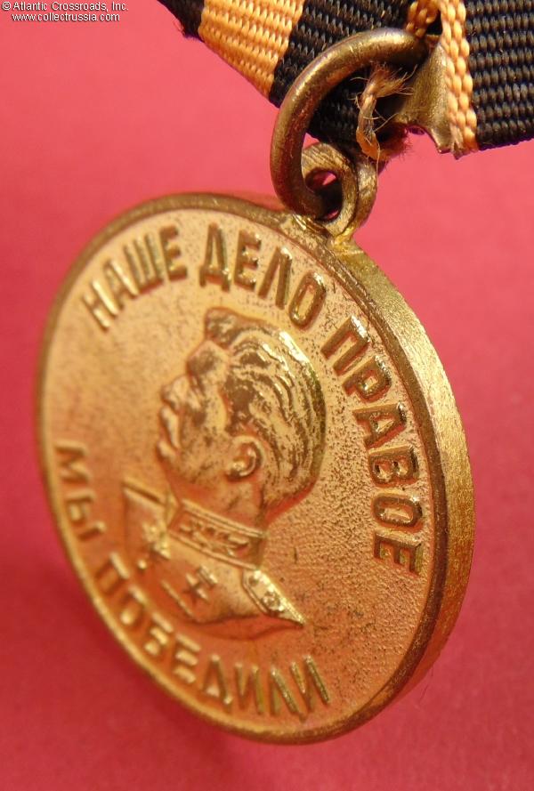 The medal comes on an original brass suspension device with a recent, lightly used ribbon. Overall, a superb example of the Soviet WW2 victory medal.