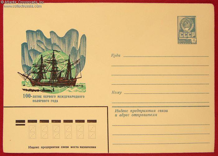 The size is 6 ¼" x 4 ½", with a pre-printed postal stamp. Published by the Ministry of Communications of the USSR, circulation unknown. The lettering under the artwork reads "100th Anniversary of the First International Polar Year." The celebrated event lasted from 1 August 1882 to 31 December 1883, and was a coordinated international project focused on geophysical observations and research in the Arctic and Antarctic regions.