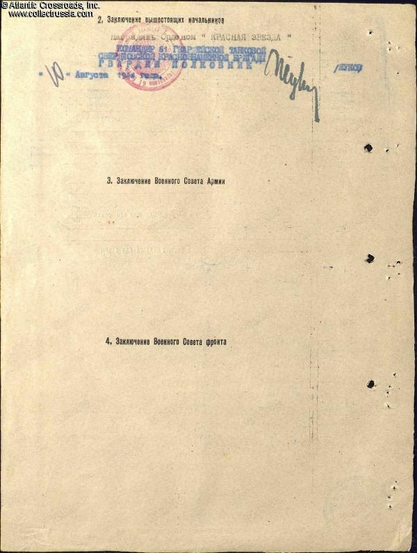 Research Materials: b/w photocopy of the award record card and award commendations for all five wartime decorations.