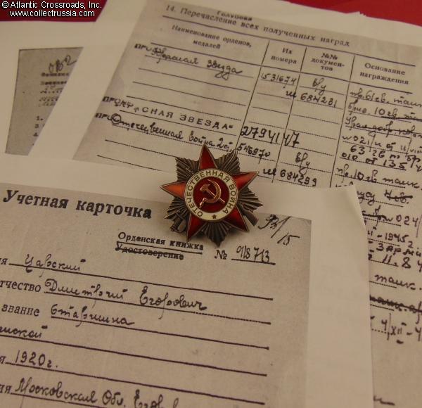 Order of the Patriotic War 2nd class, Type 2, "Flatback" variation (Krasnokamsk Mint), #546970, awarded to Sergeant Major Dmitriy Tsarskiy (Дмитрий Егорович Царский), a tank driver of the 3rd Tank Battalion, 63rd Guards Tank Brigade, 10th Guards Ural Volunteer Tank Corps, 4th Tank Army, 1st Ukrainian Front.