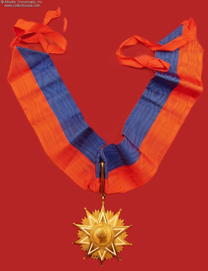 In very fine condition: slight wear to the high points of the portrait, minor loss of gilt to the end of the 6 o'clock arm of the star, and to parts of some of the ball tips. The ribbon is wear-free and completely clean.
