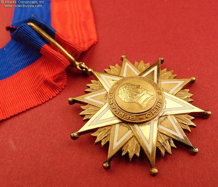 The Order of Bernardo O'Higgins is Chile's highest civilian honor for foreigners, awarded for outstanding service in education, arts, science, and social cooperation. It was created in 1956 as an extension of the Order of Merit of Chile and promoted to its own order status in 1967.