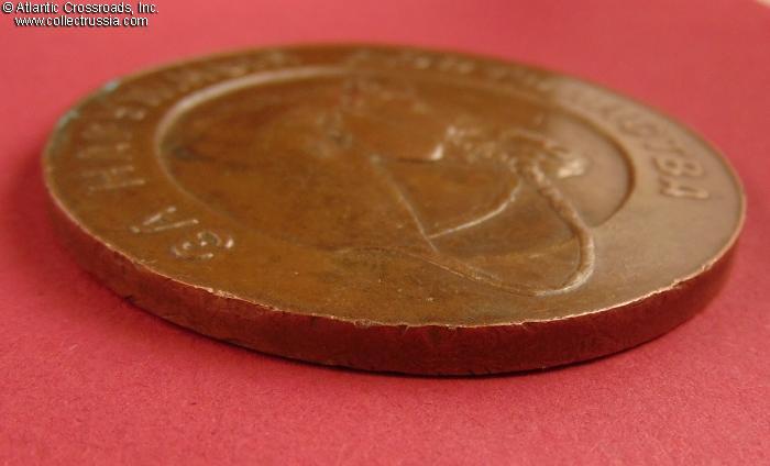 Very fine to excellent condition. There are tiny edge knocks along the outer rim and slight dings and contact marks elsewhere, none of them very noticeable. The raised artwork and lettering are nicely preserved and crisp. Attractive even chocolate toning throughout, free of blemishes or verdigris. A very attractive piece overall!