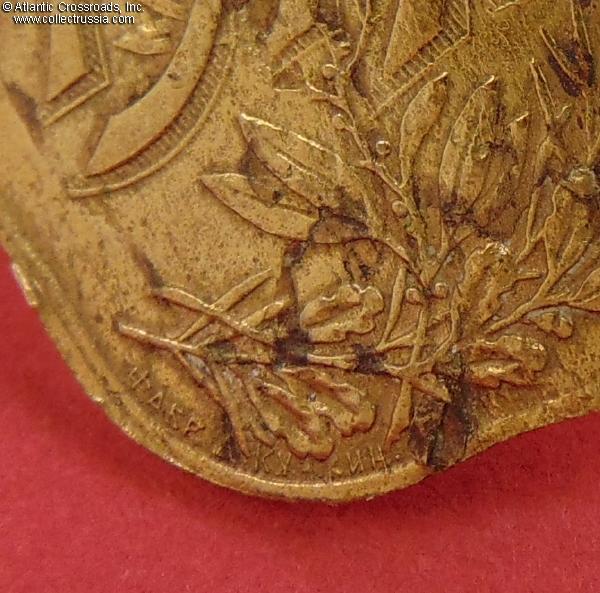 The jetton is in outstanding, excellent condition, very rare for a jetton from the Provisional Government period. The raised artwork is exceptionally well-preserved and crisp, essentially pristine. There is a minuscule amount of pitting but no wear of any kind visible to the naked eye. Aside from a few very tiny spots of tarnish, mostly on the reverse, the toning to the brass is very uniform and attractive. The connecting links are a recent addition. To reiterate, the condition of this piece is nothing short of extraordinary - literally impossible to upgrade!