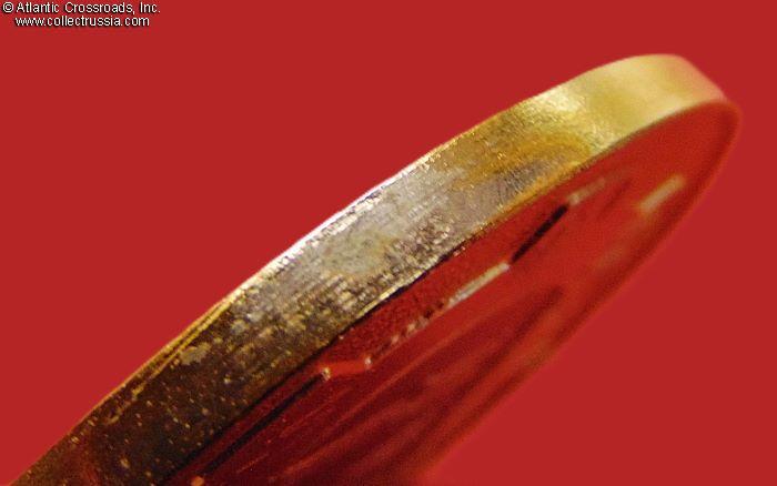 In excellent condition. Neither side of the medal shows any significant wear. The rim has a couple of spots where the gold finish has worn off, not easily noticeable at that locat