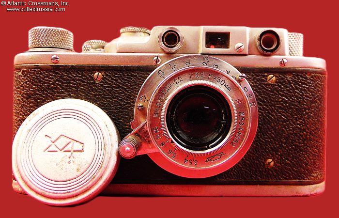 Zorki 35mm Rangefinder Camera with Original Collapsible Industar-22 Lens, Copy of Leica Design, by KMZ, Krasnogorsk Factory, 1949-52.