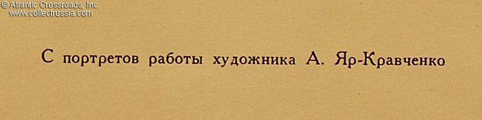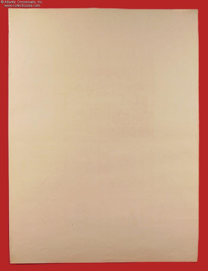 Large format measuring 20 ¼" x 27", printed on thick sturdy cardboard-like paper. Published by the State Publishing House of Political Literature, circulation unknown. The poster is part of the 12th edition of a large series of propaganda visual aids in 14 editions, entitled History of the USSR published from 1939 until 1952. The text under the header belongs to Andrei Zhdanov, Soviet politician and "propagandist-in-chief," responsible for developing the Soviet cultural policy. It says "Only Soviet literature could and did become in reality so forward, ideological and revol