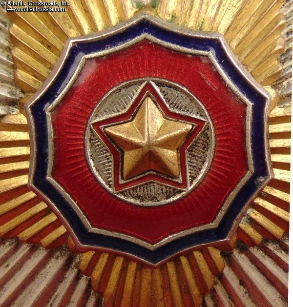 The serial number has been partly erased, obviously to conceal the identity of the original owner; nevertheless, most of its digits are still legible (the first three appear to be "414"). Beside the erased number, the order is in excellent condition. The enamel has a couple of small contact marks but no chips, significant flakes or excessive rubbing and retains a nice luster. The gold and s