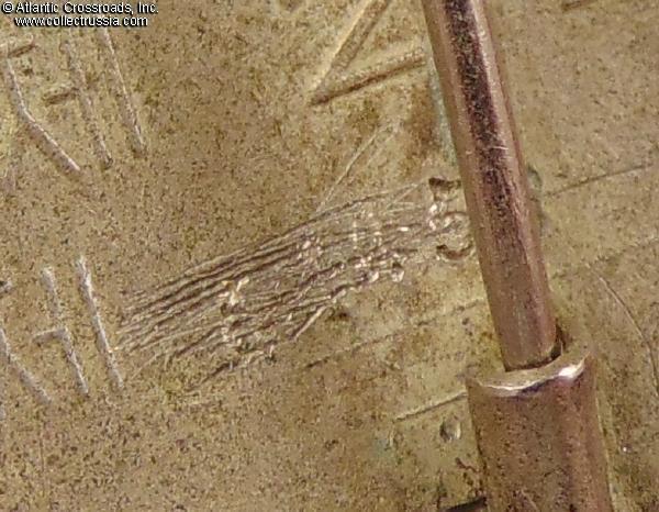 The serial number has been partly erased, obviously to conceal the identity of the original owner; nevertheless, most of its digits are still legible (the first three appear to be "414"). Beside the erased number, the order is in excellent condition. The enamel has a couple of small contact marks but no chips, significant flakes or excessive rubbing and retains a nice luster. The gold and silver finishes are very well- preserved.