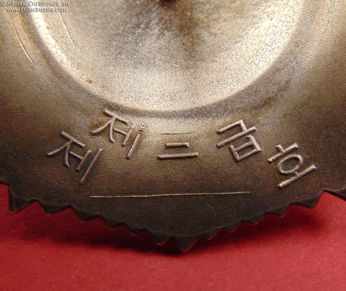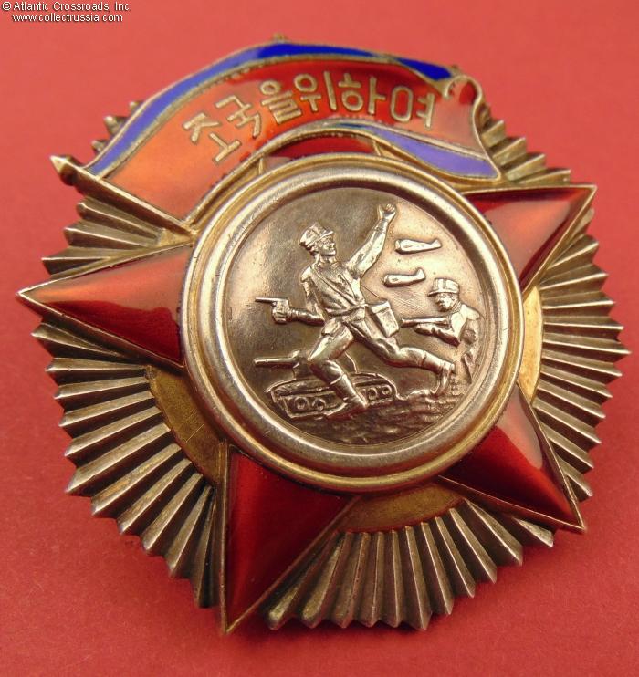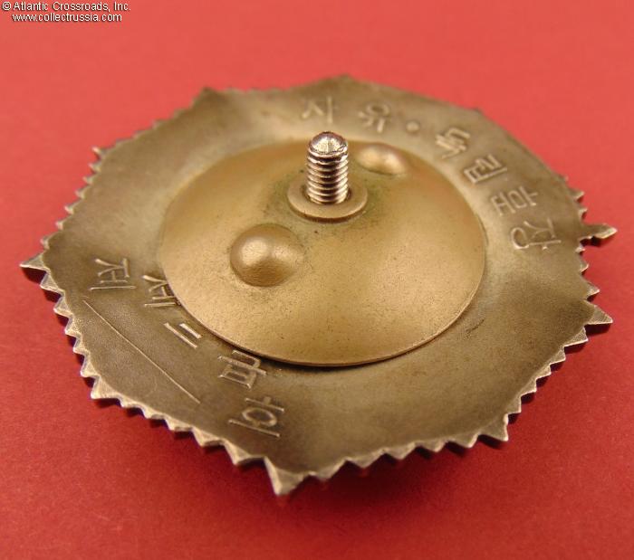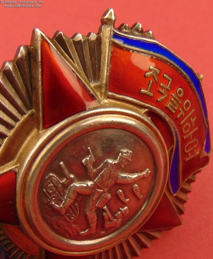 Established in 1950, the Order of Freedom and Independence was a strictly combat decoration bestowed exclusively by the DPRK Supreme People's Assembly Standing Committee. It was issued to leaders of larger military and guerilla units. A few were also awarded to Soviet military advisers and pilots who fought in the Korean War. This order can be roughly compared, both in its significance and appearance, to the Soviet Order of Alexander Nevsky. It is one of the highest - and certainly one of the most spectacular - of all North Korean decorations.