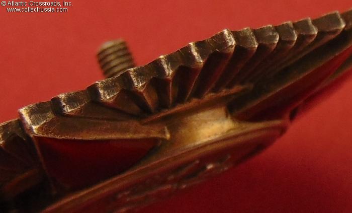 Silver gilt, enamels. Beautiful enamels and very high overall quality are typical of Soviet mint manufacture. The badge is of massive construction, measuring 56.3 mm in height, 54.8 mm in width; weighs 56.2 g not including the screw plate.