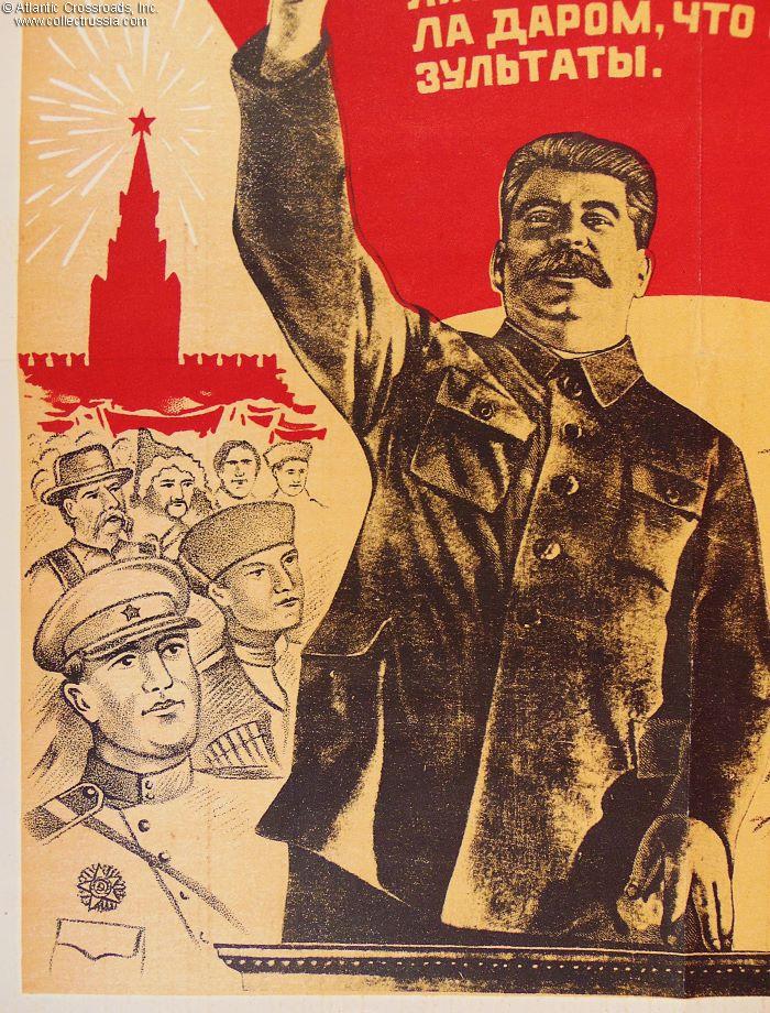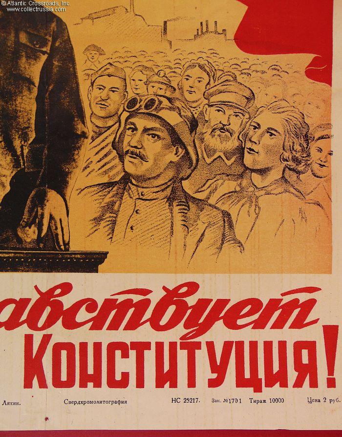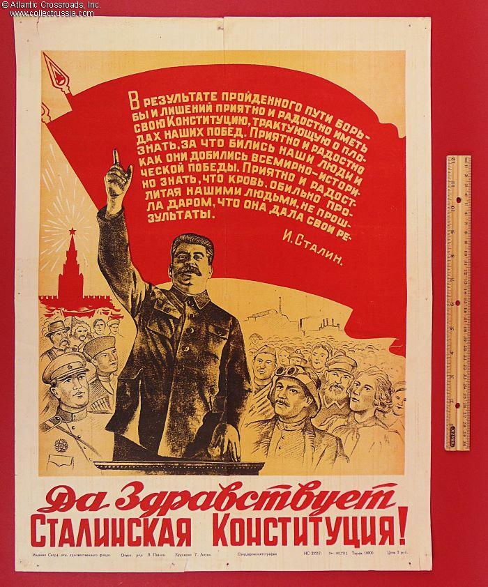 Lithographic Poster of Stalin Praising the Role of "His" Constitution of 1936 in Victory over Germany, circa late 1940s.