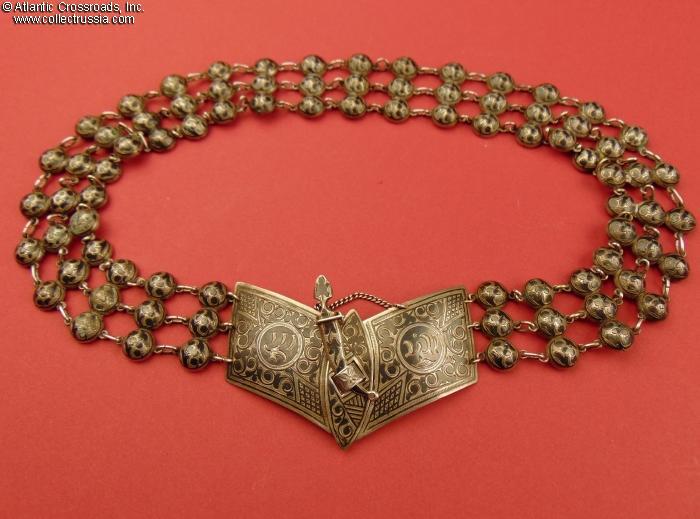 Lady's Caucasian Style Silver and Niello Belt, by a Saint Petersburg maker, 1908 - 1917.