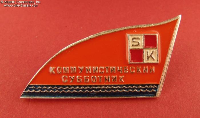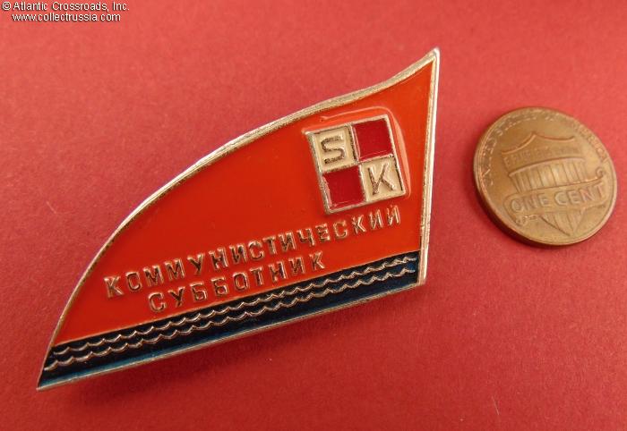 Badge of a Manager of Organizer, Communist Subbotnik ("Volunteer" Saturday Workday) at the Sarkanais Kvadrāts ("Red Square") Rubber Goods Factory, Riga, Latvian SSR, circa 1980s.