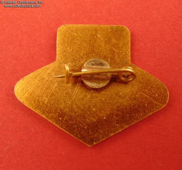 Brass, enamels; 25.4 x 31.5 mm. The inscription is in Latvian language. A very well-made piece in excellent condition.