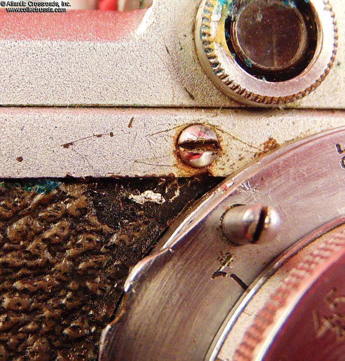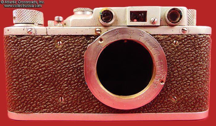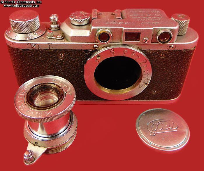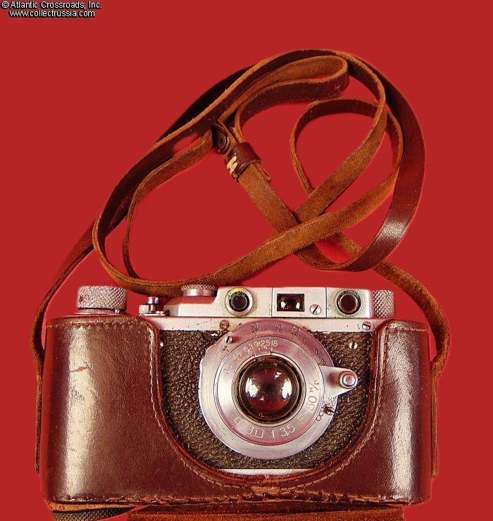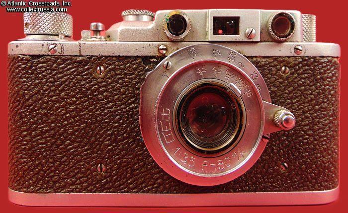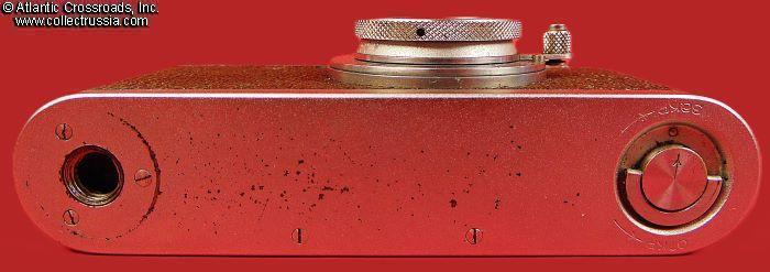 The camera measures approx. 5 ¼"(W) x 2 ¾"(H) x 1 ½"(D with the lens collapsed). Weighs a little over 1 lb. Manufactured by the Kharkov Felix Dzerzhinsky Factory, Ukraine. The original lens cap is lined with short-pile velvet on the inside. This is the first model which did not have the model number next to the FED trademark. There were several modifications of the first model. The engraving on the top part literally translates as "FED, NKVD-USSR, Kharkov Enterprise named after F.E.Dzerzhinsky." The serial number 121595 falls into the range assigned to cameras made in 1940. This modification is also known as "Commander's FED."