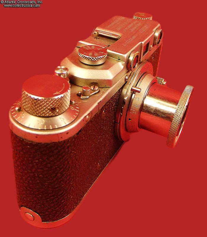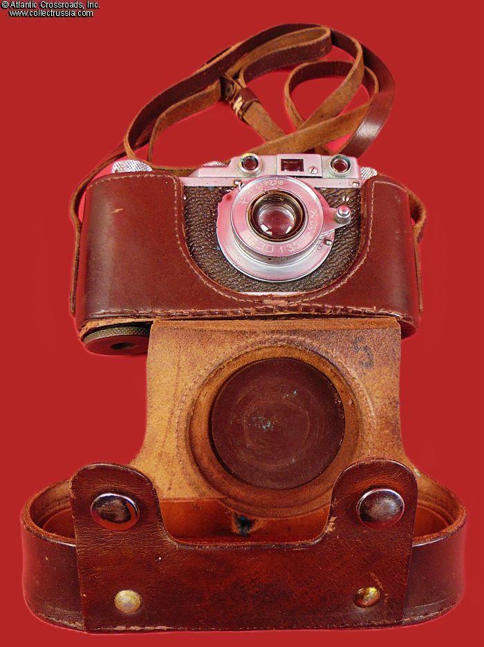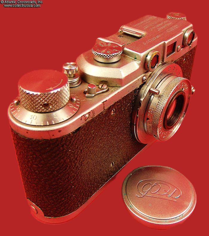 The camera measures approx. 5 ¼"(W) x 2 ¾"(H) x 1 ½"(D with the lens collapsed). Weighs a little over 1 lb. Manufactured by the Kharkov Felix Dzerzhinsky Factory, Ukraine. The original lens cap is lined with short-pile velvet on the inside. This is the first model which did not have the model number next to the FED trademark. There were several modifications of the first model. The engraving on the top part literally translates as "FED, NKVD-USSR, Kharkov Enterprise named after F.E.Dzerzhinsky." The serial number 121595 falls into the range assigned to cameras made in 1940. This modific