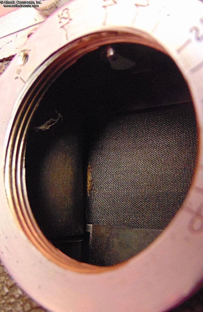 Mechanically, we could only perform a superficial test of the film advance knob, shutter release as well as aperture control and focusing ring of the lens. All tested mechanisms appeared to function properly. Visually, the shutter curtain appears to work but it has a small tear (see photo) and, possibly, needs replacement. When extended partially, the tube of the lens is a little wobbly.