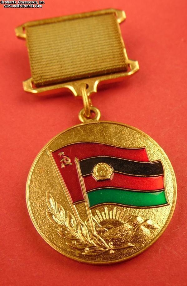 The medal was instituted by the Communist government of Afghanistan and produced at the Soviet mint. It was issued to all Soviet servicemen upon completion of their tour of duty in Afghanistan. Although we could find no documentary proof of it, its pinback variation is believed to be the earliest variation of the award among many Russian collectors. It is undoubtedly far more scarce than the screw back version: in our experience, the difference in availability between the two is at least 1:20.