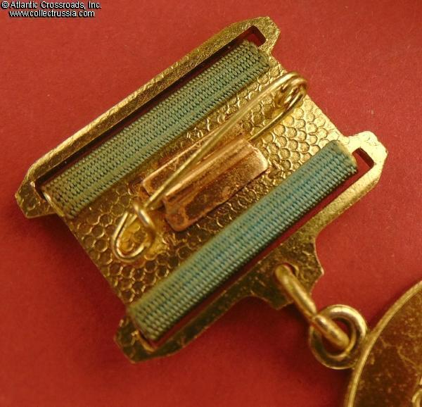 In excellent condition. The enamel is perfect. The gilt finish is perfectly preserved and bright, having only a couple of tiny spots and no significant tarnish. The old, clearly original ribbon is well-preserved and sound.